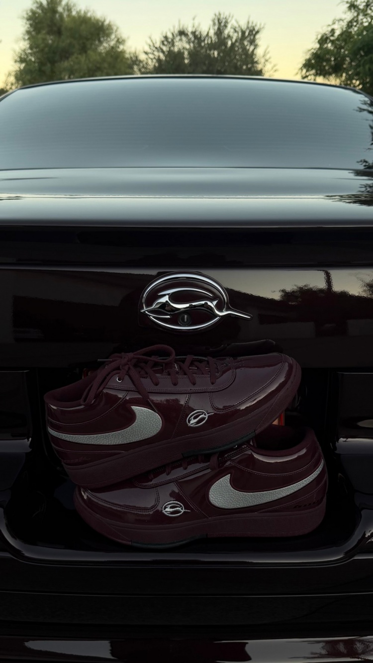 Chiếc Chevrolet Impala x Nike Book 1 PE này được làm bằng màu đen bóng giống như chiếc ô tô của anh ấy và chi tiết logo ô tô cũng được thêm vào bên ngoài giày. Chủ đề tổng thể hoàn toàn phù hợp với chiếc xe của anh ấy.