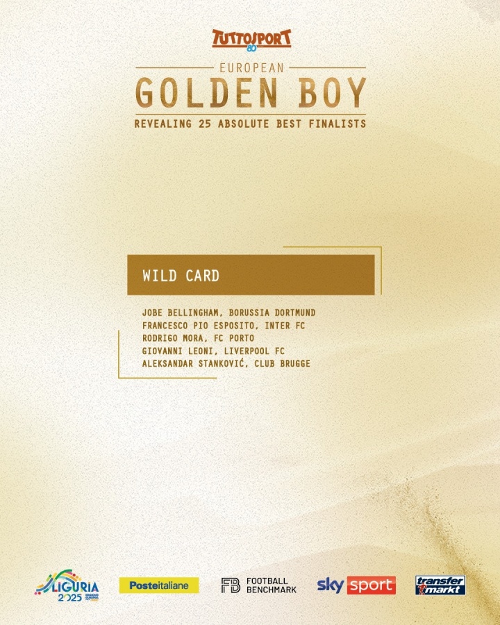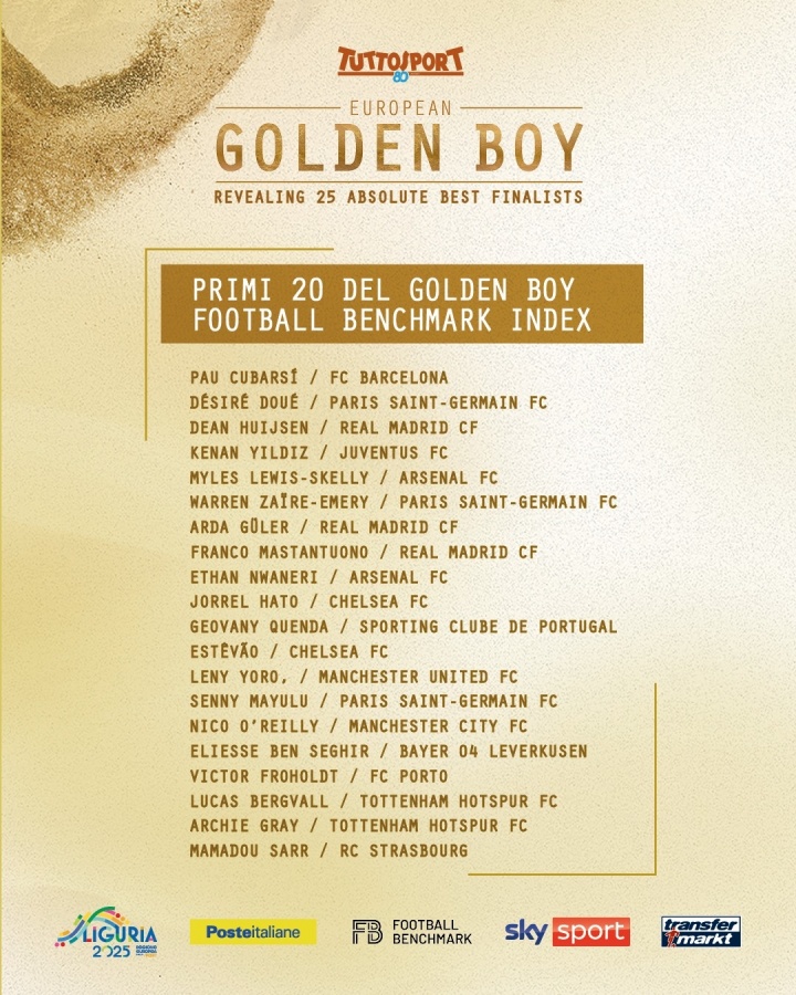 Giải thưởng Cậu bé vàng đã công bố 25 ứng cử viên, bao gồm Kubasi, Douai, Wyson, Skelly, Guler và Bellingham Jr.