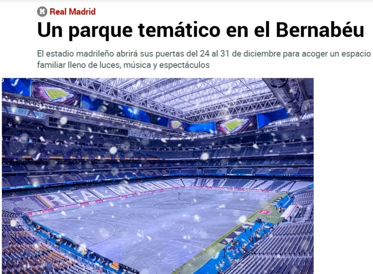 Theo báo cáo của "Marca", Sân vận động Santiago Bernabeu của Real Madrid sẽ được chuyển đổi thành một công viên giải trí lớn trong dịp Giáng sinh này.