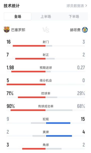 Đàn áp toàn diện! Barcelona 3-0 Getafe Dữ liệu: bắn 16-3, bắn 7-2, sở hữu bóng 71%-29%