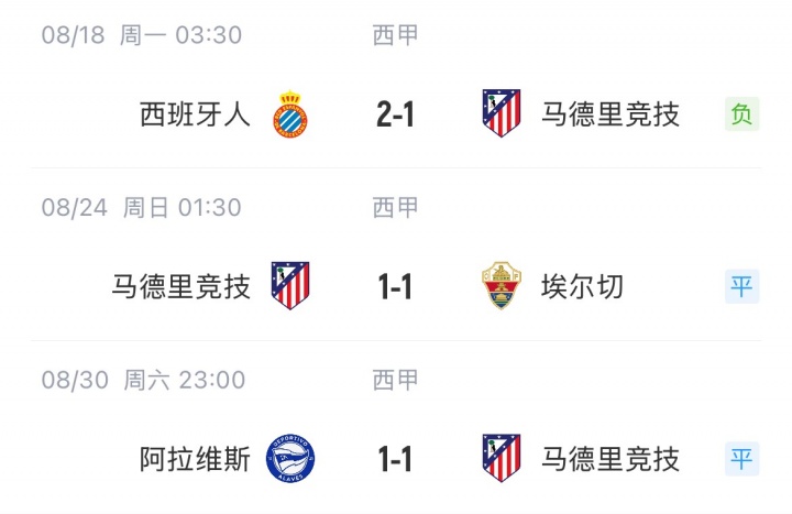 Atletico Madrid đã bị đảo ngược 1-2 bởi Espanyol ở vòng đầu tiên và vẽ 1-1 với Elche trong trò chơi thứ hai. Điều đáng nói là Atletico Madrid đã ghi bàn đầu tiên trong ba trận đấu.